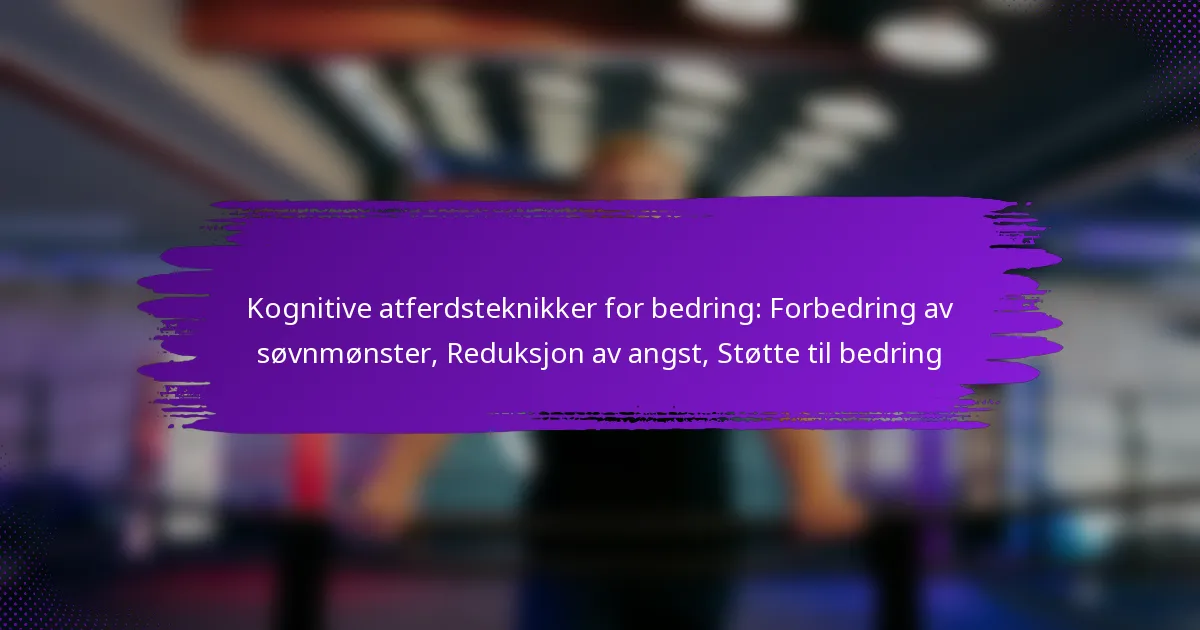 Kognitive atferdsteknikker for bedring: Forbedring av søvnmønster, Reduksjon av angst, Støtte til bedring