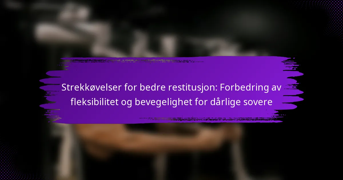 Strekkøvelser kan betydelig forbedre restitusjonen for dårlige sovere ved å forbedre fleksibilitet og bevegelighet, noe som igjen kan føre til bedre søvnkvalitet. Å inkludere både statiske og dynamiske strekk i rutinen din kan hjelpe med å lindre muskelspenninger og fremme avslapning, noe som gjør det lettere å sovne og forbli sovende.